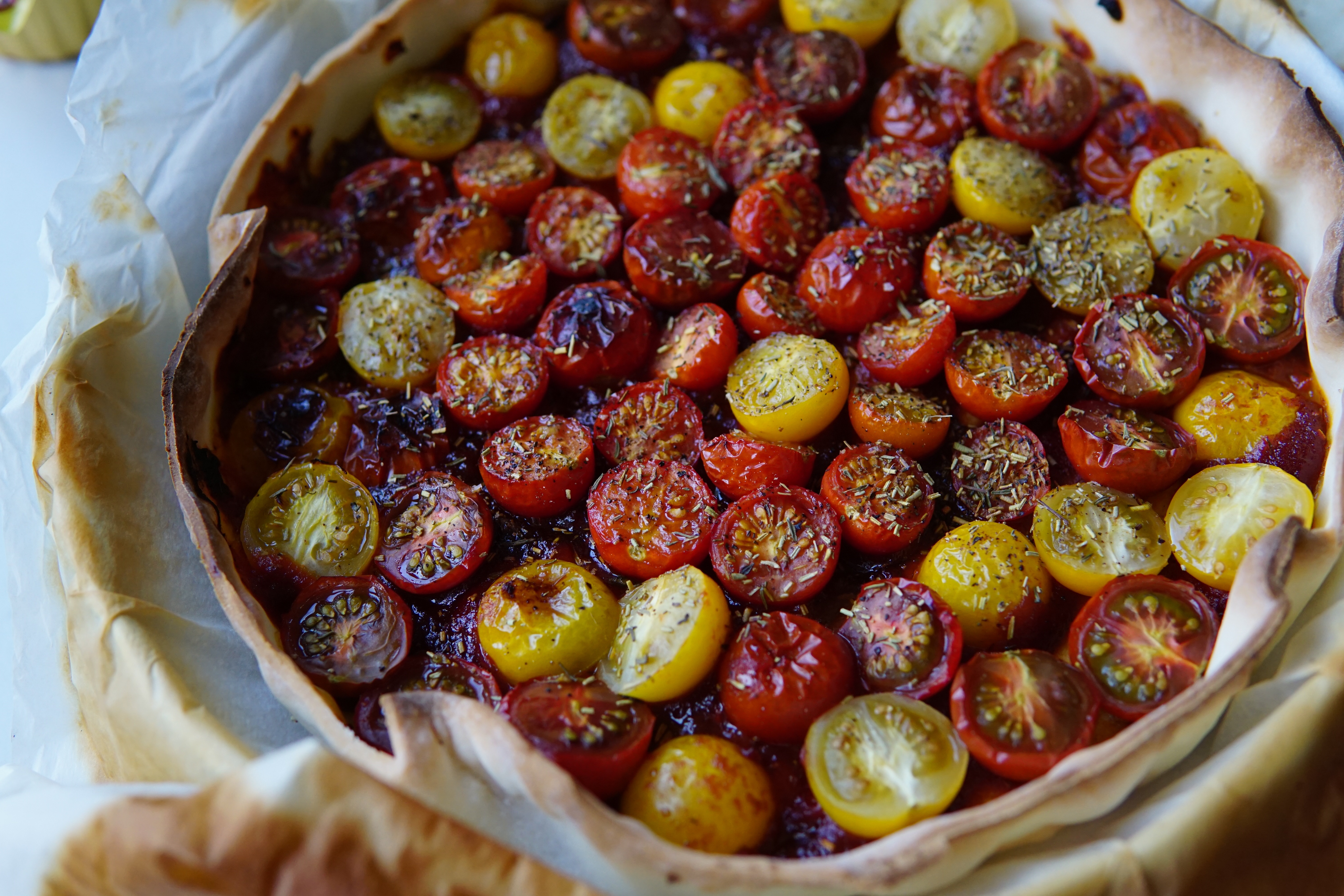 - tomatentaart (klik hier voor het recept): door de tomaatjes te bestrooien met een beetje suiker krijg je een lekkere zoete toets