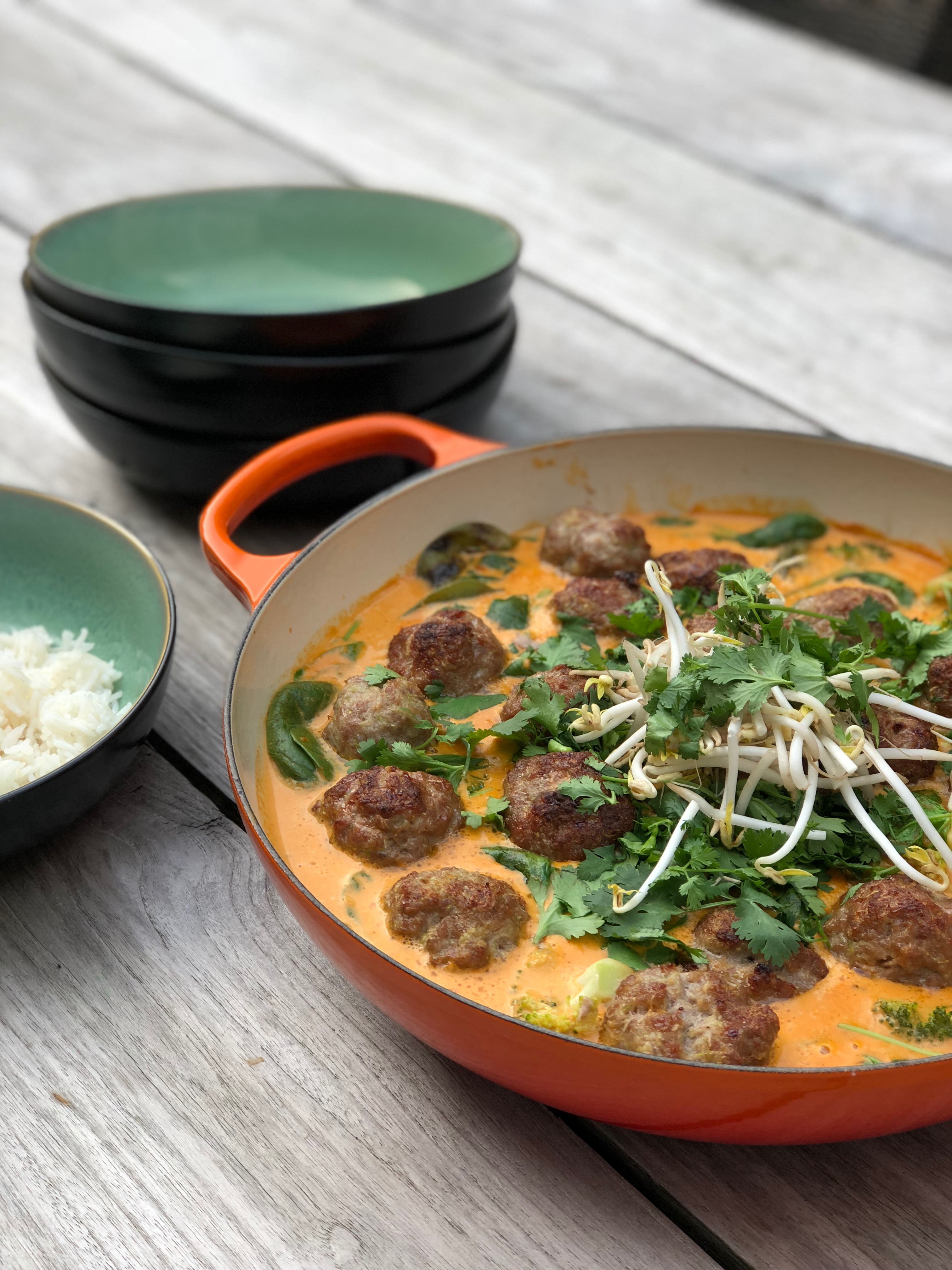 Balletjes met witloof – ok witloof heb je misschien niet standaard in huis maar ik heb meteen een dubbele portie van deze balletjes gemaakt. Geen fan van witloof? Dan maakt je met tomatensaus en courgette. Iets meer werk als je verse tomatensaus wil maken, maar een fles passata met wat kruiden werkt ook. Of balletjes met kokosroom , pindasaus en rode curry. Voor een eenvoudige versie meng je gewoon van kokosroom, bouillon met rode curry kruiden (ik heb zo een kruidenmix van Eurema) en doe er dan balletjes bij.