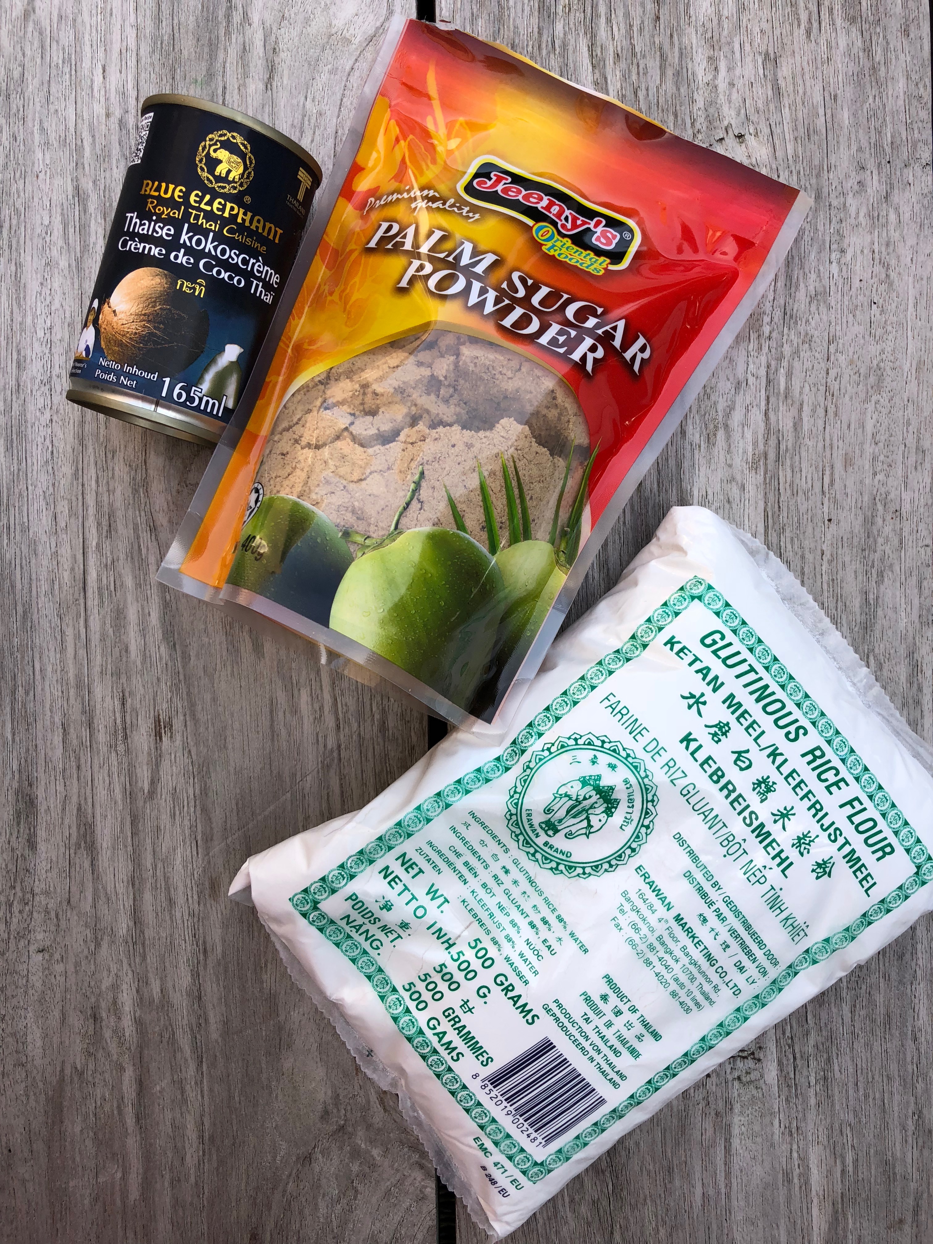 - 200 gr kleefrijstmeel of glutinous rice flour (bij de speciaalzaak)