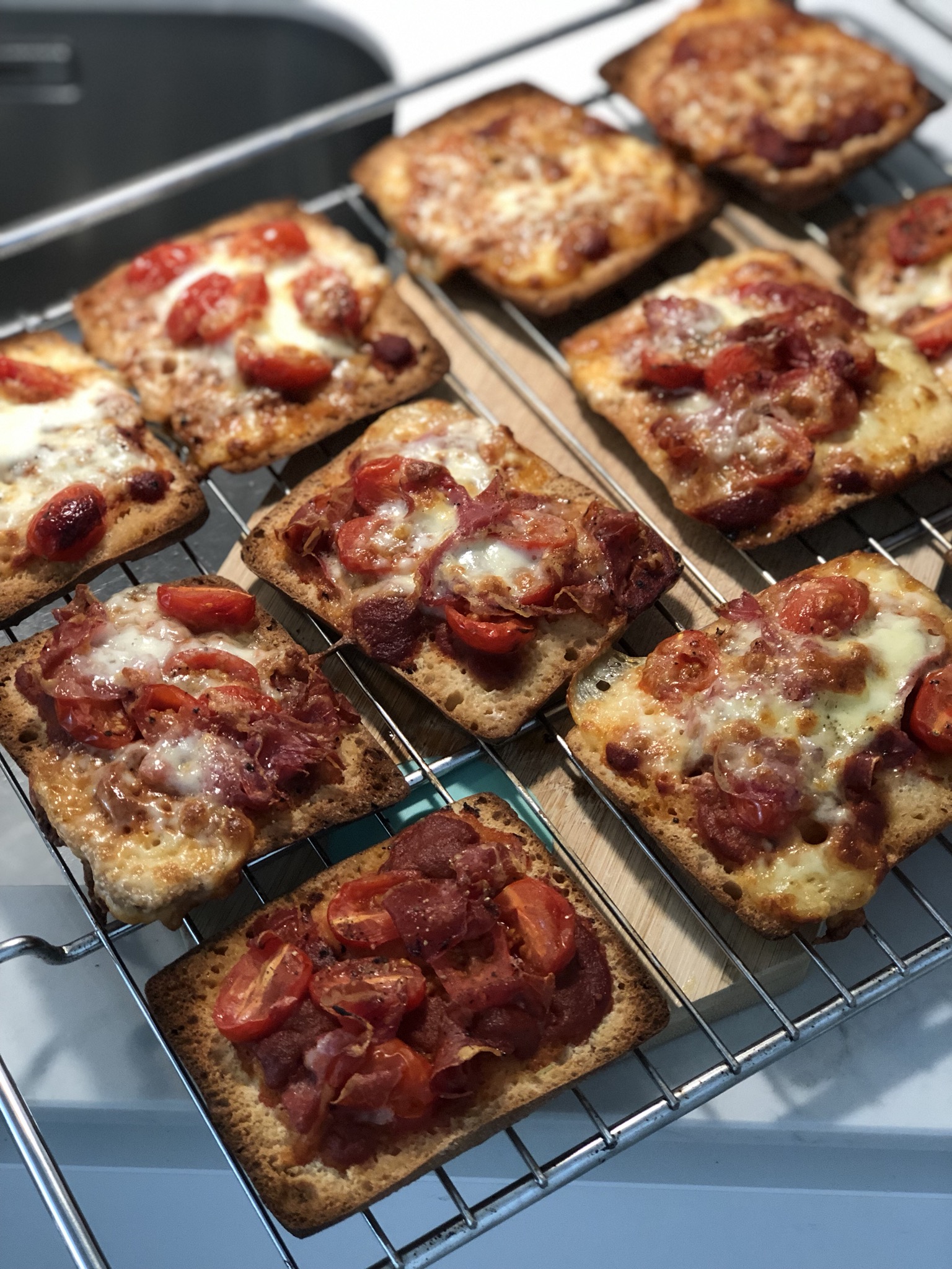 - Bak de pizzabaguettes af in de oven in 5 minuten. Als je mozzarella gebruikt moet die mooi goudbruin zijn.