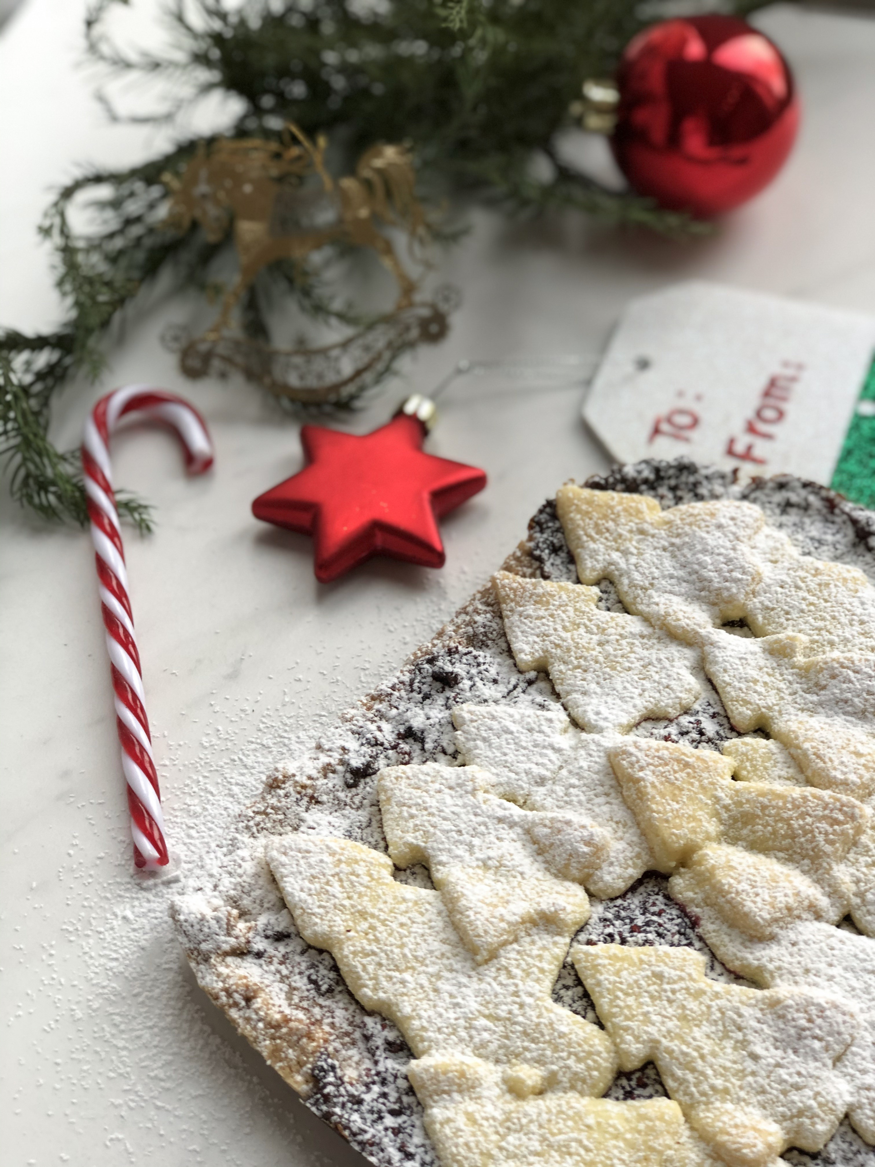 De feestdagen zijn bij ons het moment om gezellig samen te zijn. Wat gaan wandelen en goed uitwaaien en dan knus in de zetel kruipen met een tasje thee en koekjes…of taart. Deze taart past perfect bij een heerlijk tasje thee. Dit is eigenlijk een hele grote zandkoek en je kan die maken voor elke gelegenheid: hartjes voor Valentijn, kerstboompjes voor Kerst, flamingo’s of ananassen voor een zomerse tea time. Geen zin in speciale vormpjes? Maak dan gewoon een rastertje zoals op confituurtaarten.