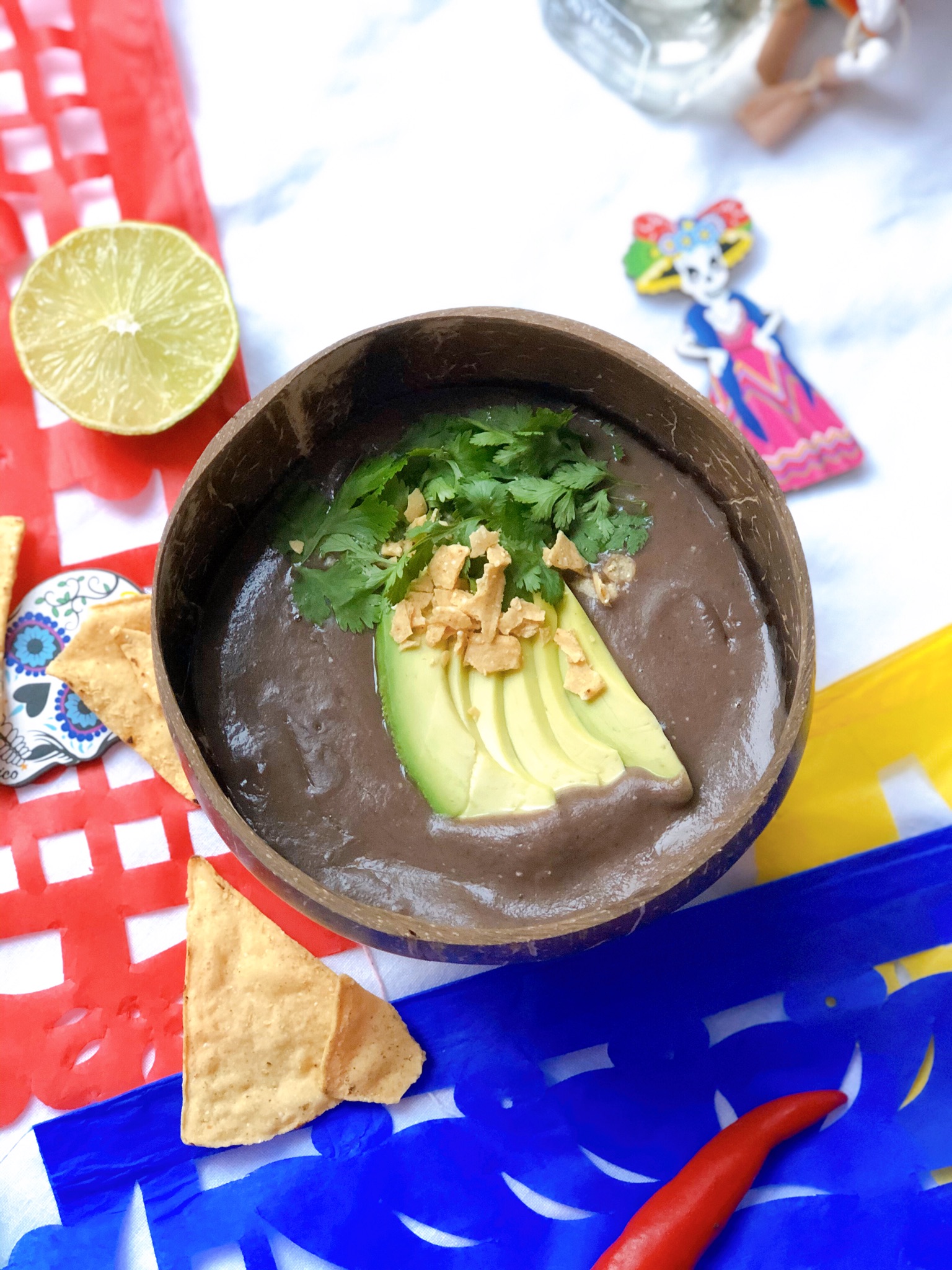 We zijn net terug van een weekje Mexico waar ik heel veel zwarte bonen gegeten heb. In taco’s, in een stoofpotje als ontbijt en in soep. Ik had het nooit gedacht maar ik ben fan van zwarte bonen. Terug thuis zijn we wat aan het bekomen van de lange reis en de jetlag en niets beter om aan dit druilerige weer te wennen dan een lekker soepje.